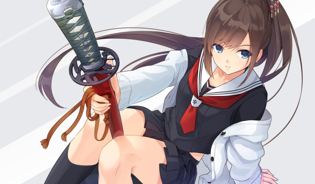 girl, sword, anime, katana, ken, blade, japanese, seifuku
