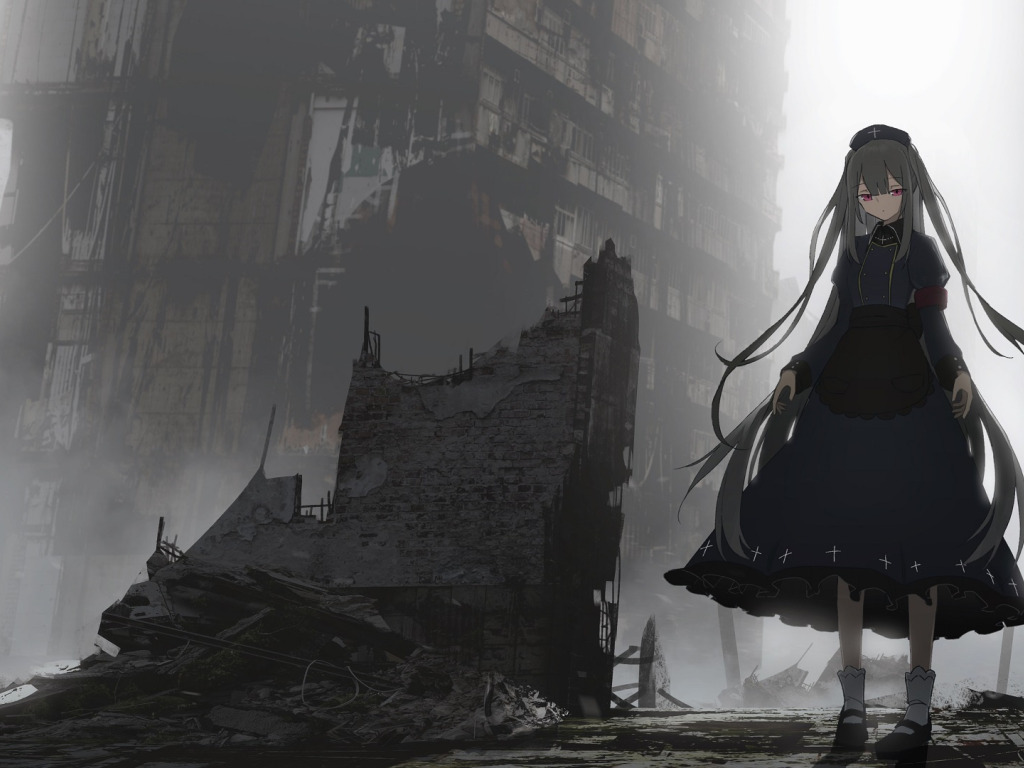 Назад к обои девушка, город, руины