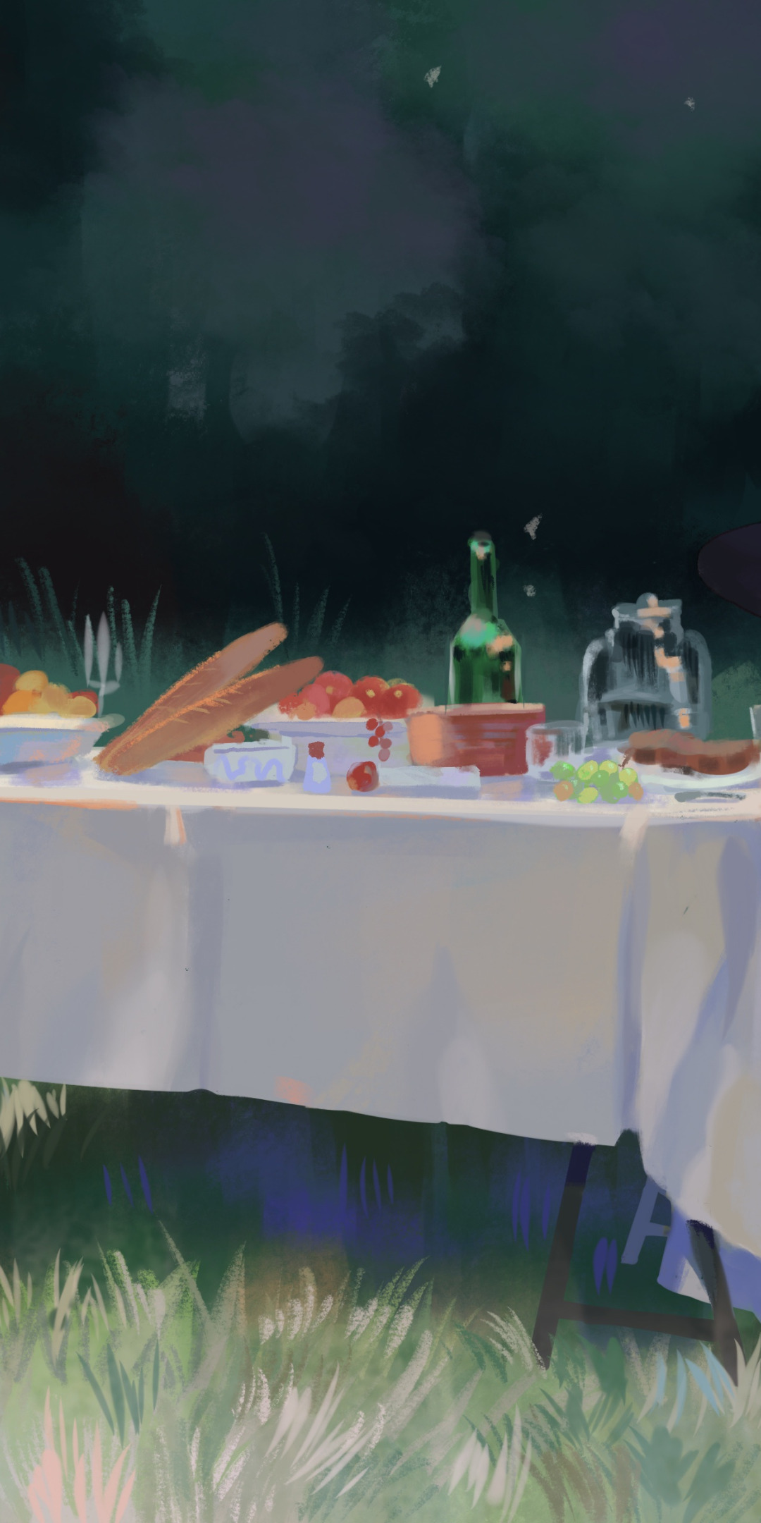 Назад к обои девушка, природа, стол, еда, ведьма