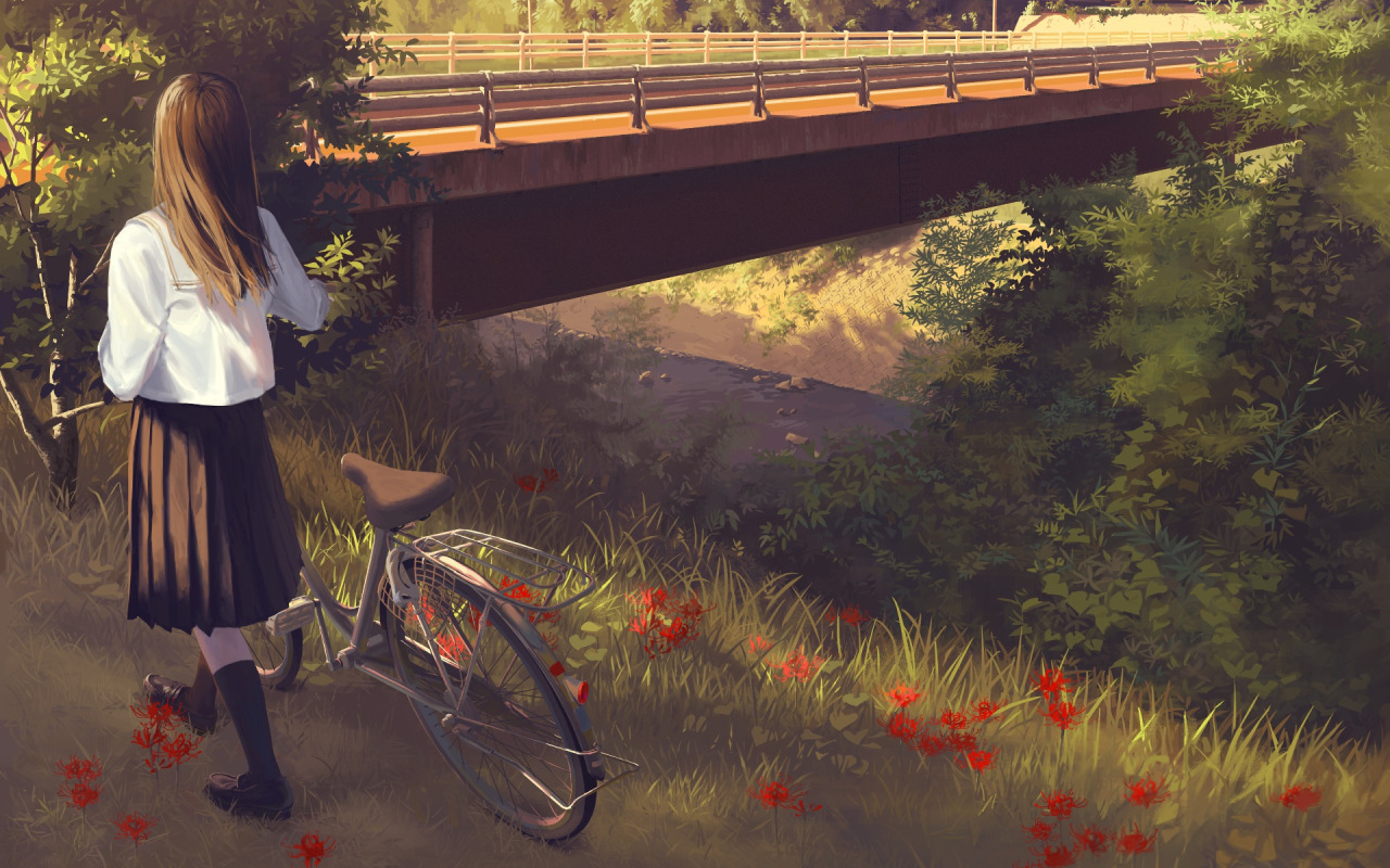 Назад к обои девушка, мост, природа