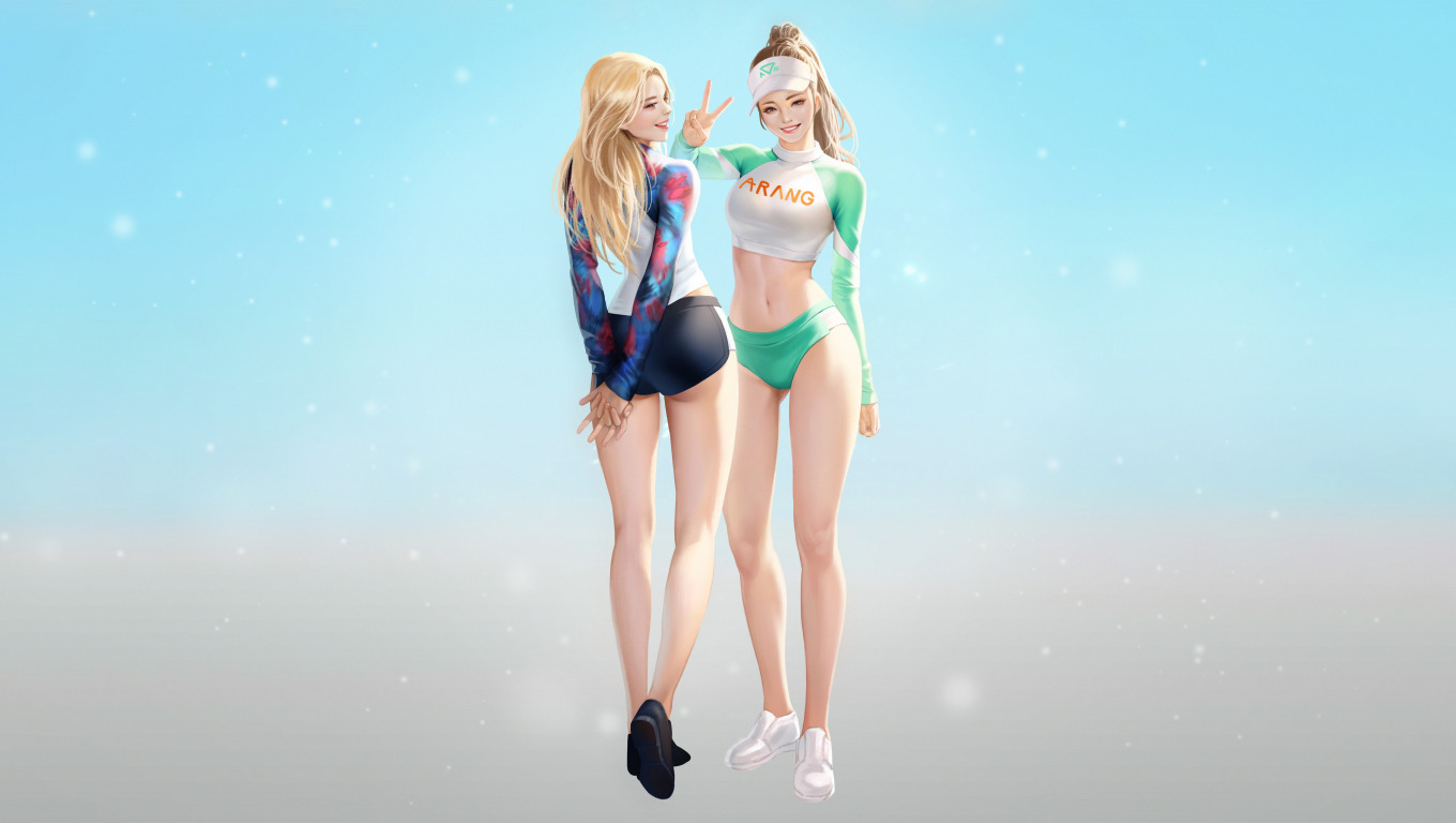 Назад к обои девушка, улыбка, фон, две, минимализм, фигура, арт, блондинка