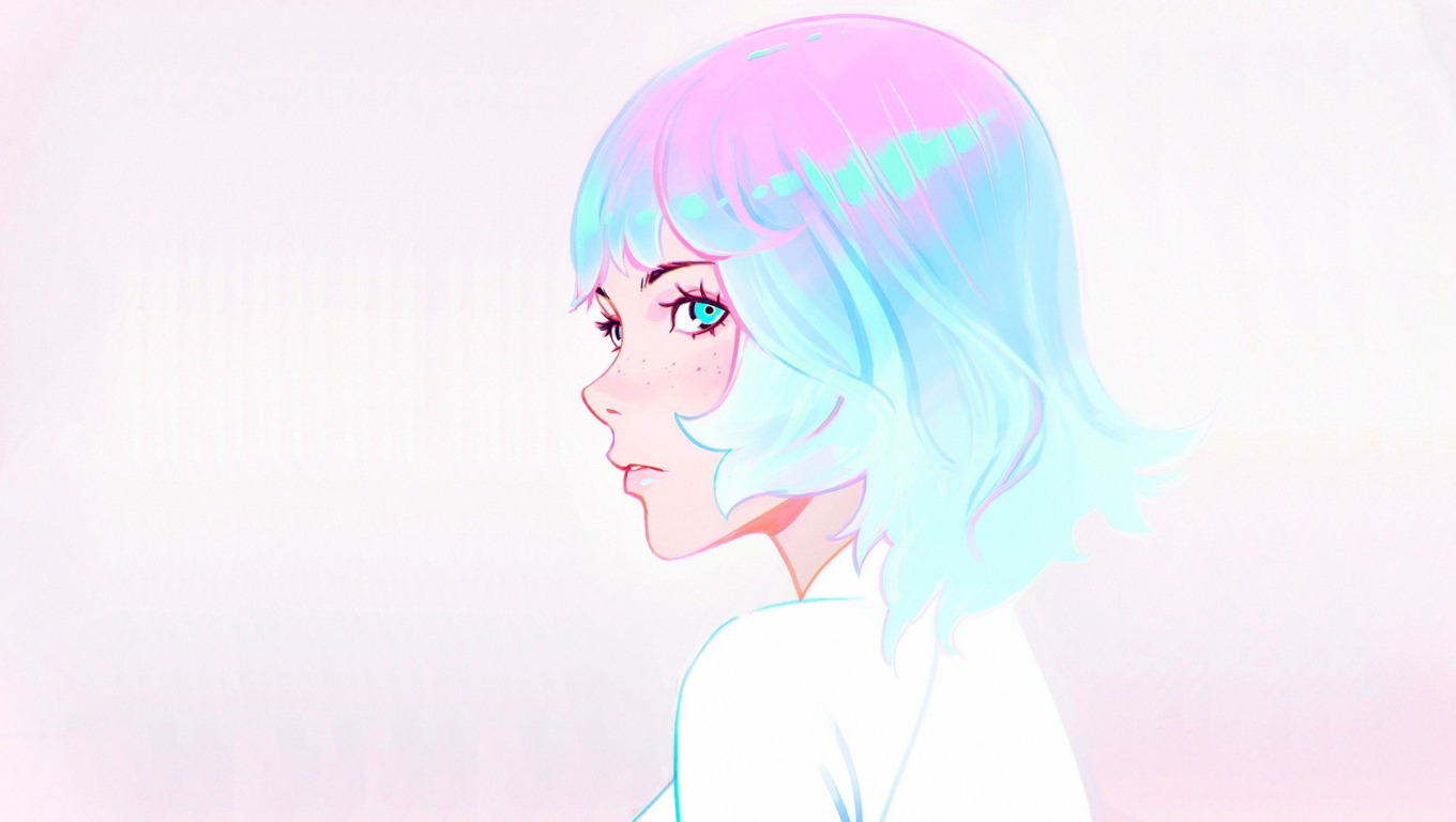 Назад к обои стрижка, веснушки, профиль, голубые волосы, челка, портрет девушки, Илья Кувшинов