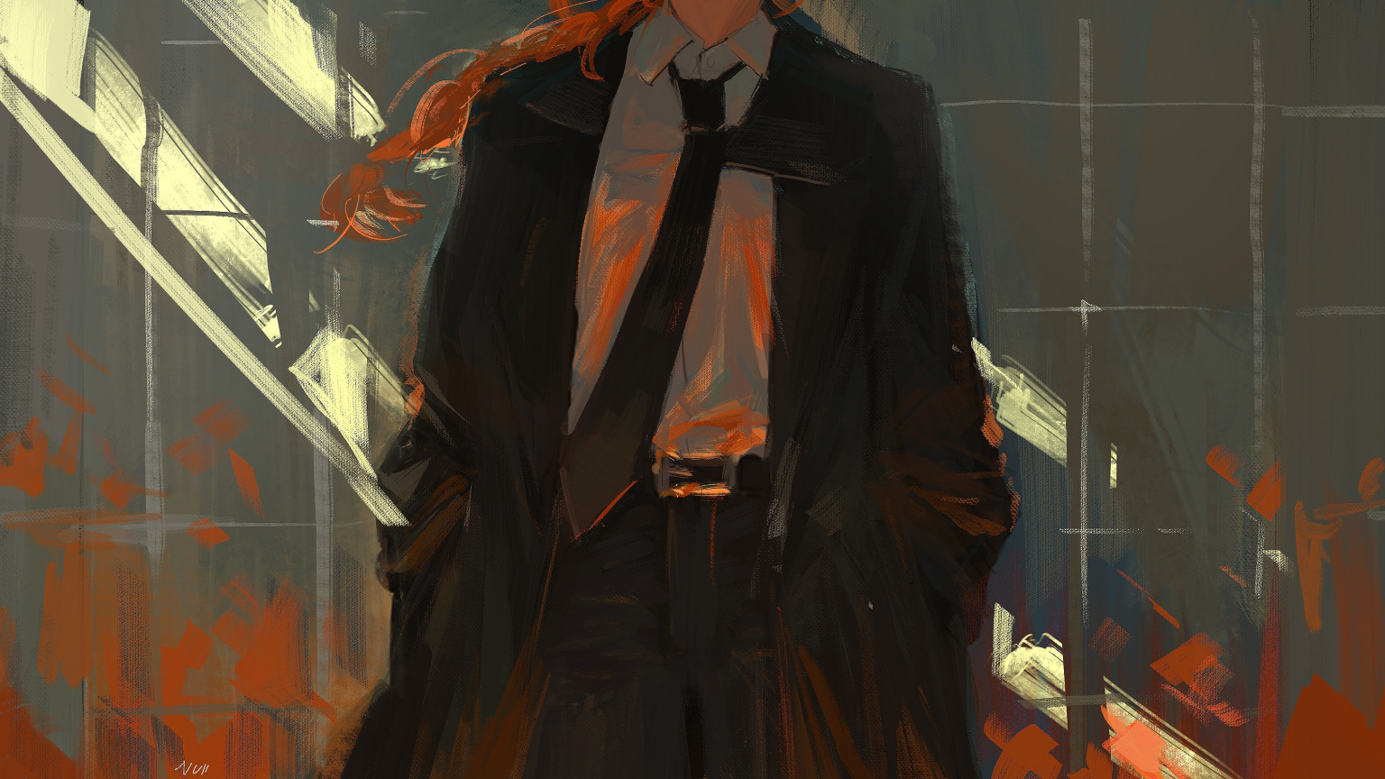 Назад к обои девушка, стена, Chainsaw Man, Makima