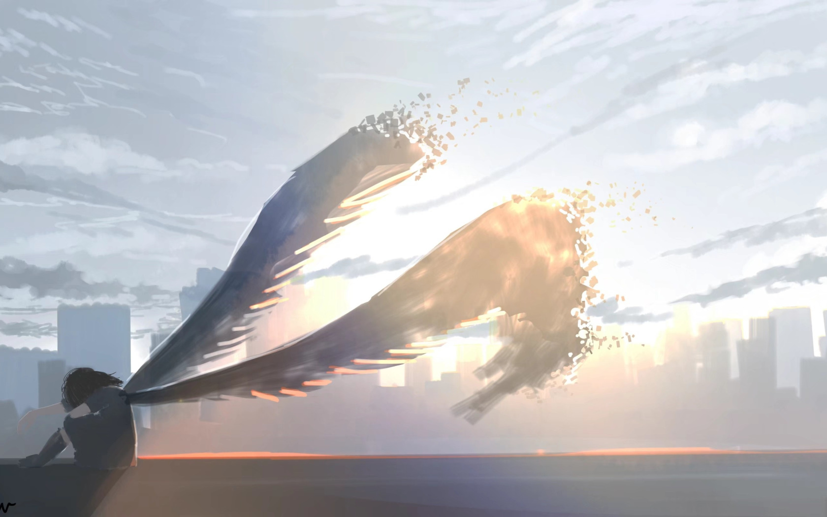 Назад к обои девушка, город, ангел, груть