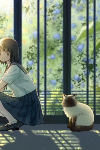 Назад к обои кот, аниме, девочка