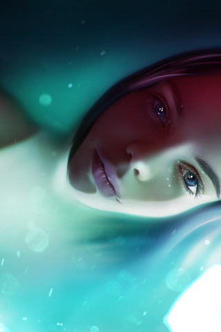Назад к обои girl, long hair, water, art, blue eyes, face, digital art, artwork