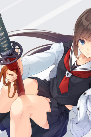 Назад к обои girl, sword, anime, katana, ken, blade, japanese, seifuku