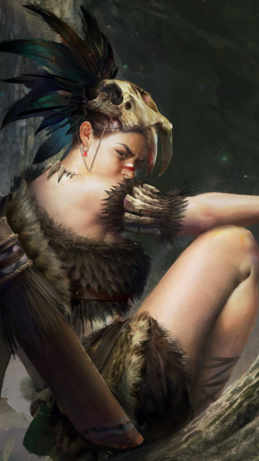 Назад к обои лес, взгляд, девушка, оружие, череп, охотник