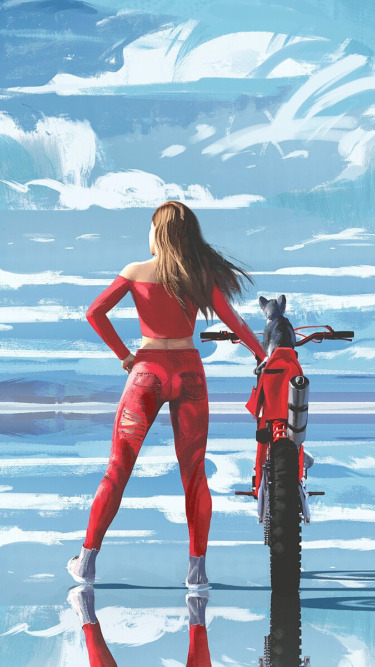 Назад к обои кошка, девушка, облака, простор, мотоцикл, space, girl, cat
