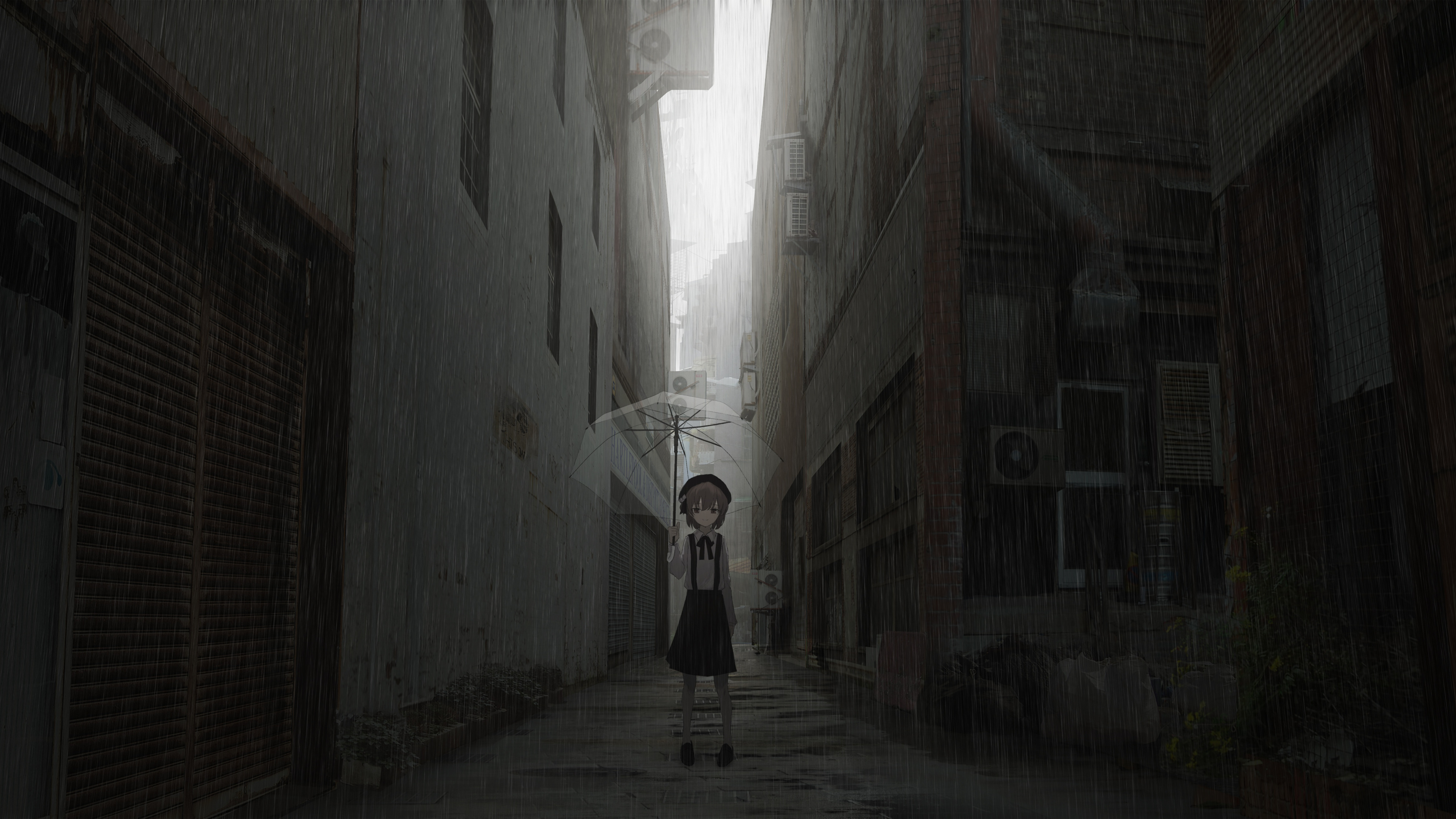 Назад к обои город, улица, зонт, девочка