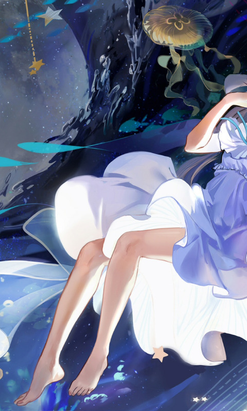 Назад к обои девушка, луна, медузы