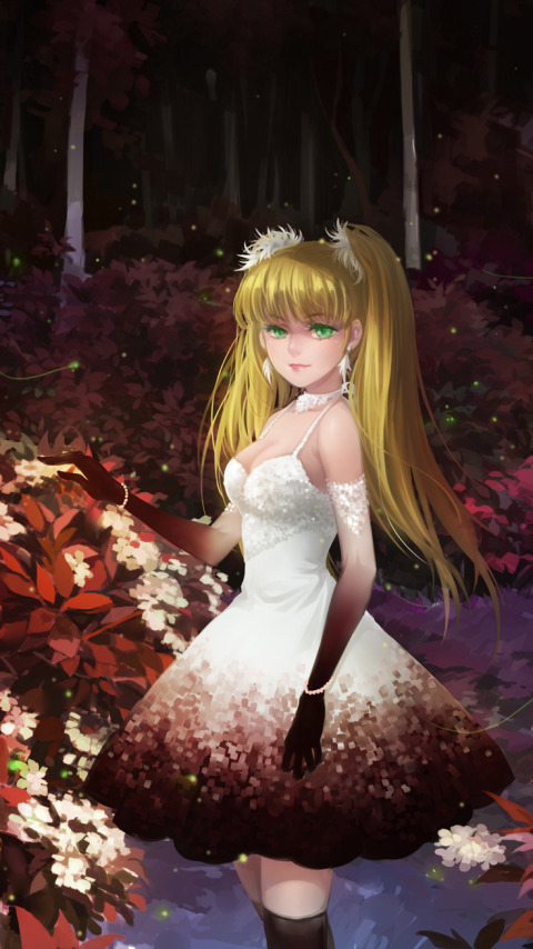 Назад к обои лес, девушка, цветы, ночь, темно, платье, арт, кусты
