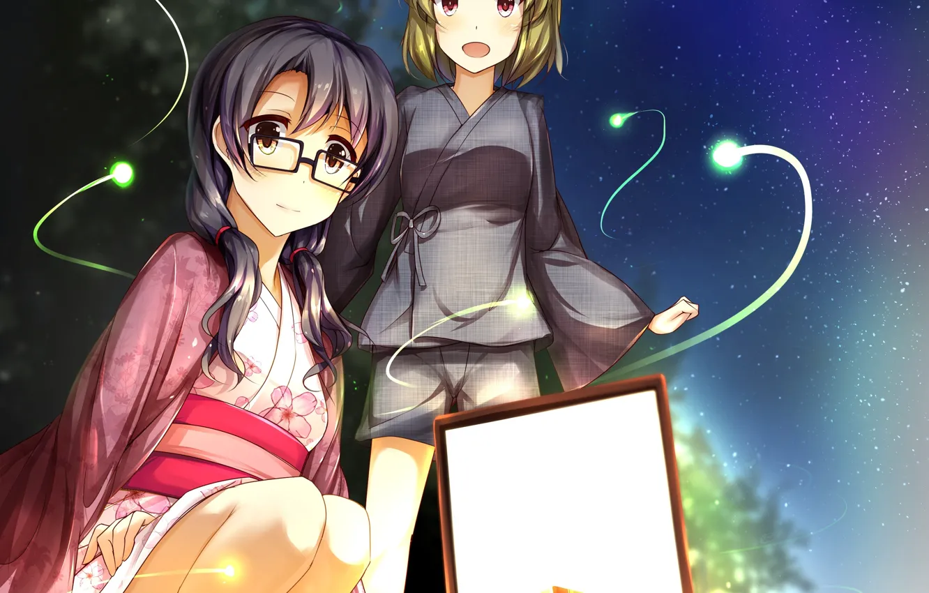 Ночь, светлячки, девочка, кораблик обои на телефон (фото, картинки)