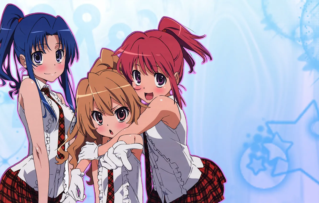 Девушка, аниме, галстук, перчатки, хвостик, aisaka taiga, toradora, minori kushieda обои на телефон (фото, картинки)