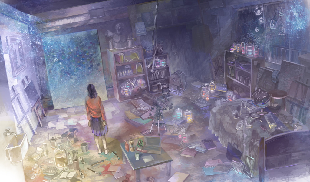 Назад к обои девушка, цветы, игрушка, кровать, картина, кран, аниме, шарф