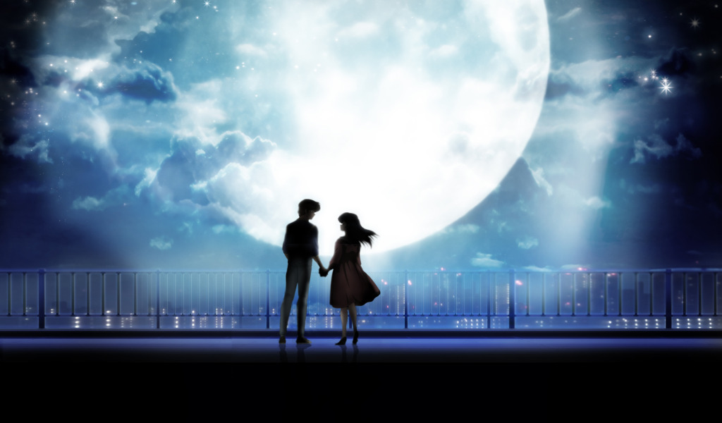 Назад к обои девушка, ночь, город, луна, пара, парень, maison ikkoku, takahashi rumiko