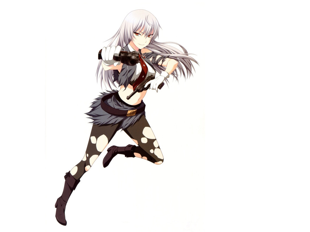 Назад к обои пистолет, чулки, сапоги, белый фон, перчатки, дырка, art, Anekouji Naoko to Giniro no Shinigami