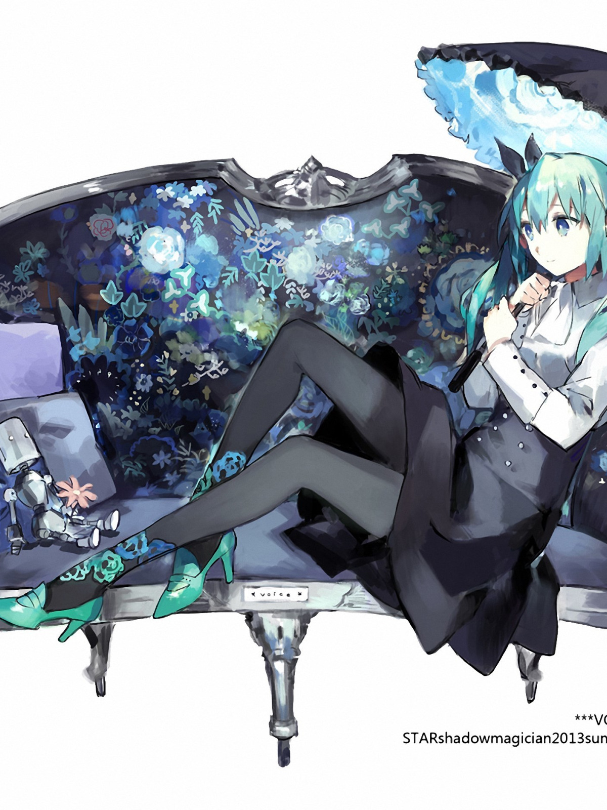 Назад к обои девушка, зонтик, диван, надпись, волосы, робот, юбка, подушки
