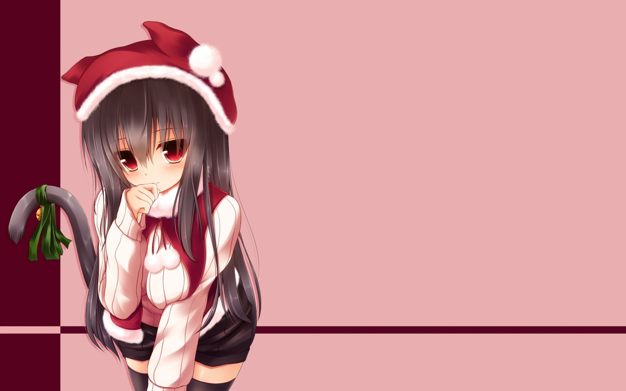 Назад к обои праздник, новый год, аниме, арт, девочка, неко, ушки, шапочка