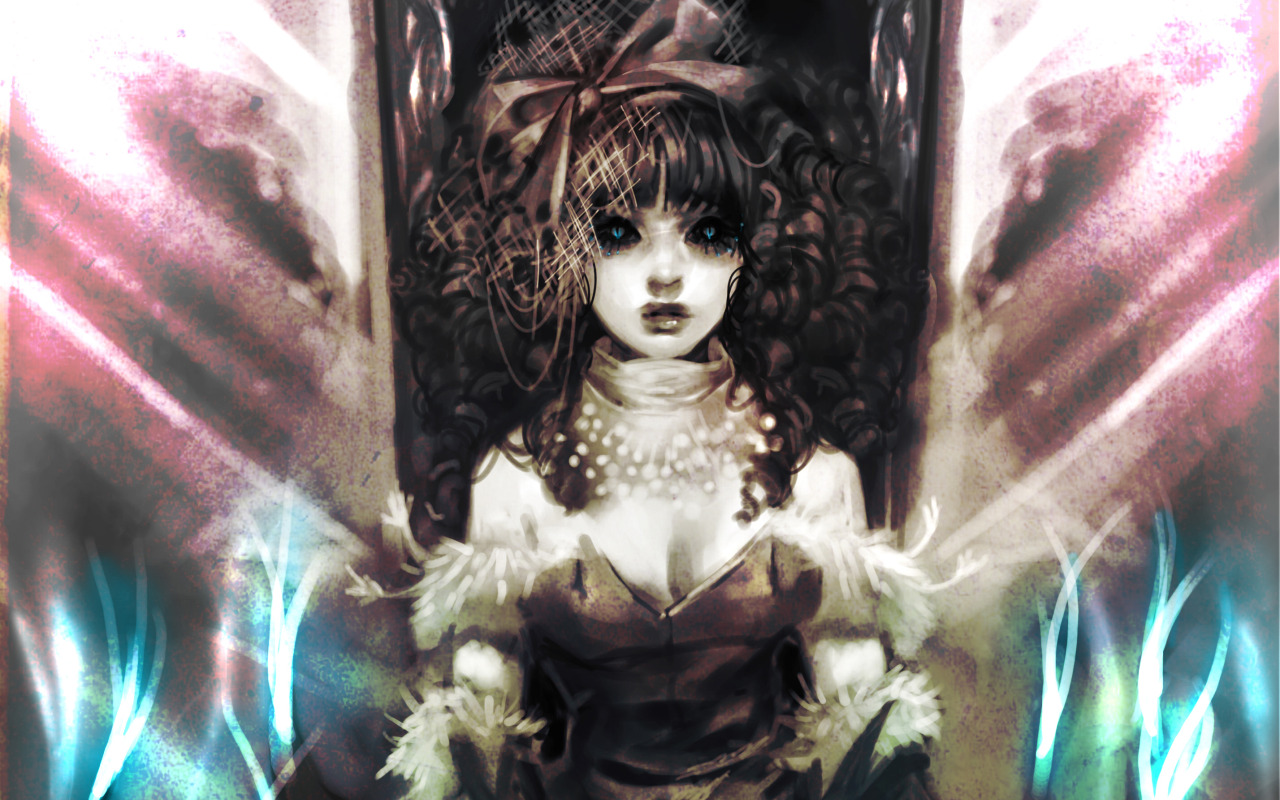 Назад к обои девушка, готика, кудряшки, мех, бант