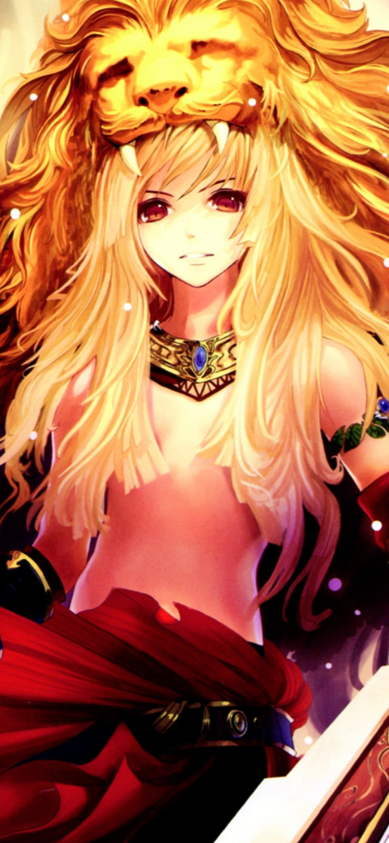 Назад к обои девушка, оружие, меч, лев, аниме, арт, клыки, tachikawa mushimaro