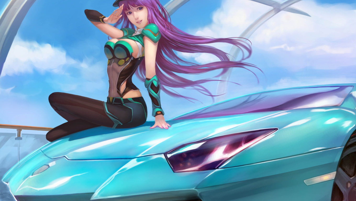 Назад к обои взгляд, девушка, улыбка, Lamborghini, SpecV, автомобиль, сидит, жест