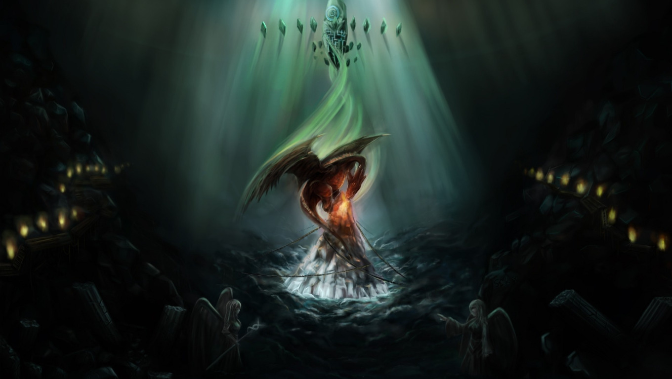 Назад к обои камни, дракон, ангел, арт, пещера, nopnop