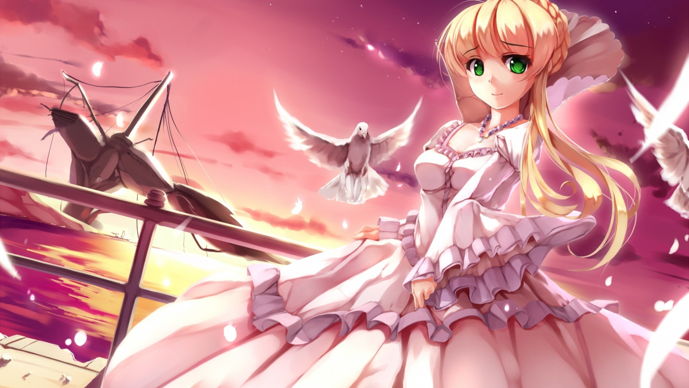 Назад к обои девушка, закат, аниме, платье, арт, Aldnoah Zero, Аселлум