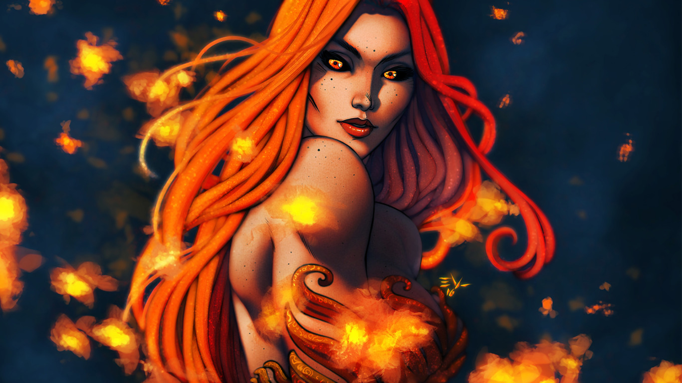 Назад к обои грудь, взгляд, девушка, лицо, огни, красота, арт, рыжая