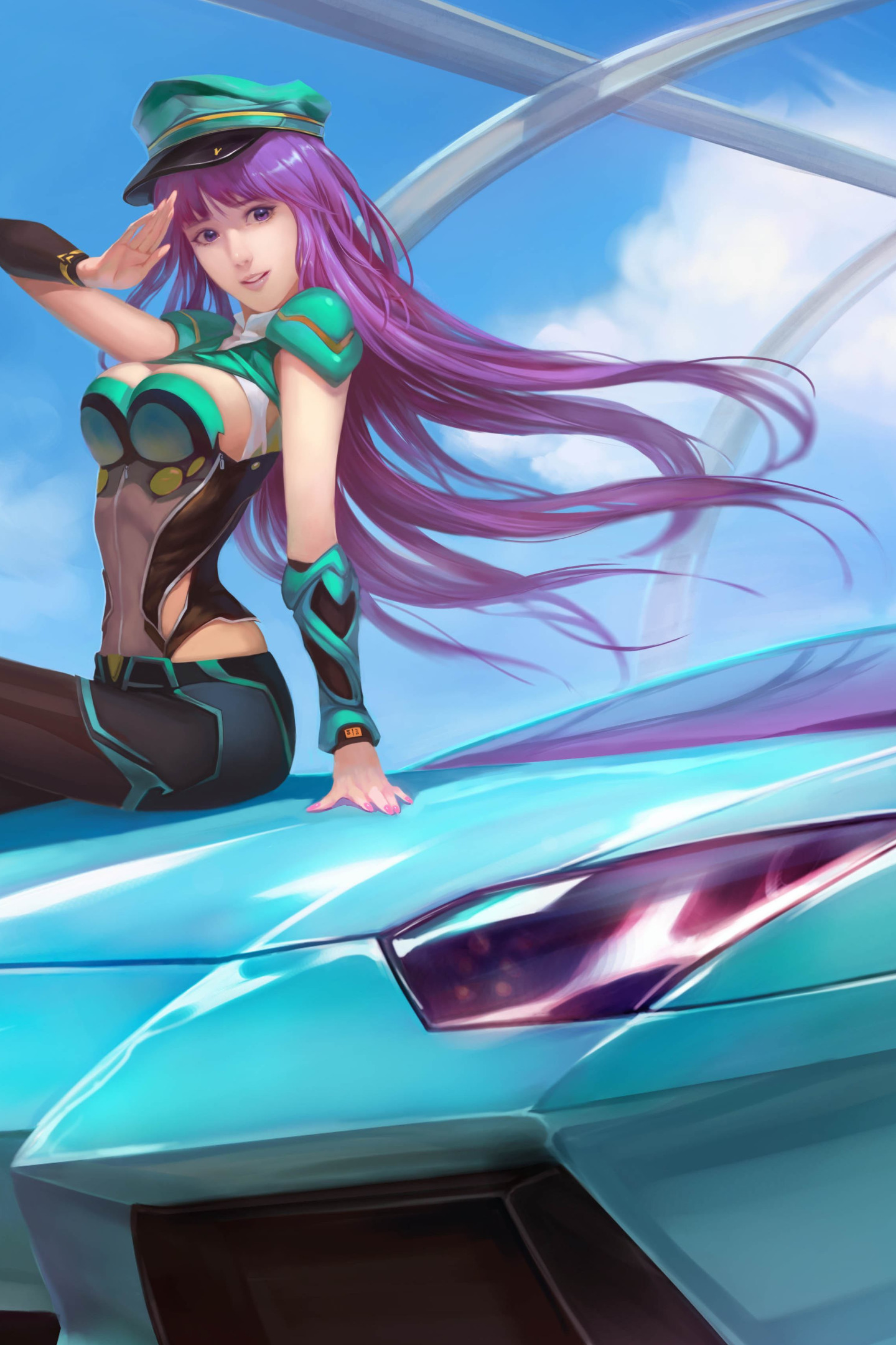 Назад к обои взгляд, девушка, улыбка, Lamborghini, SpecV, автомобиль, сидит, жест