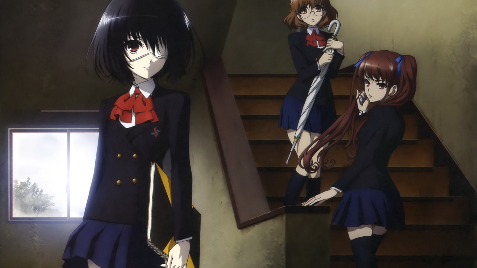 Назад к обои девушка, зонт, аниме, очки, лестница, тетрадь, anime, школьники