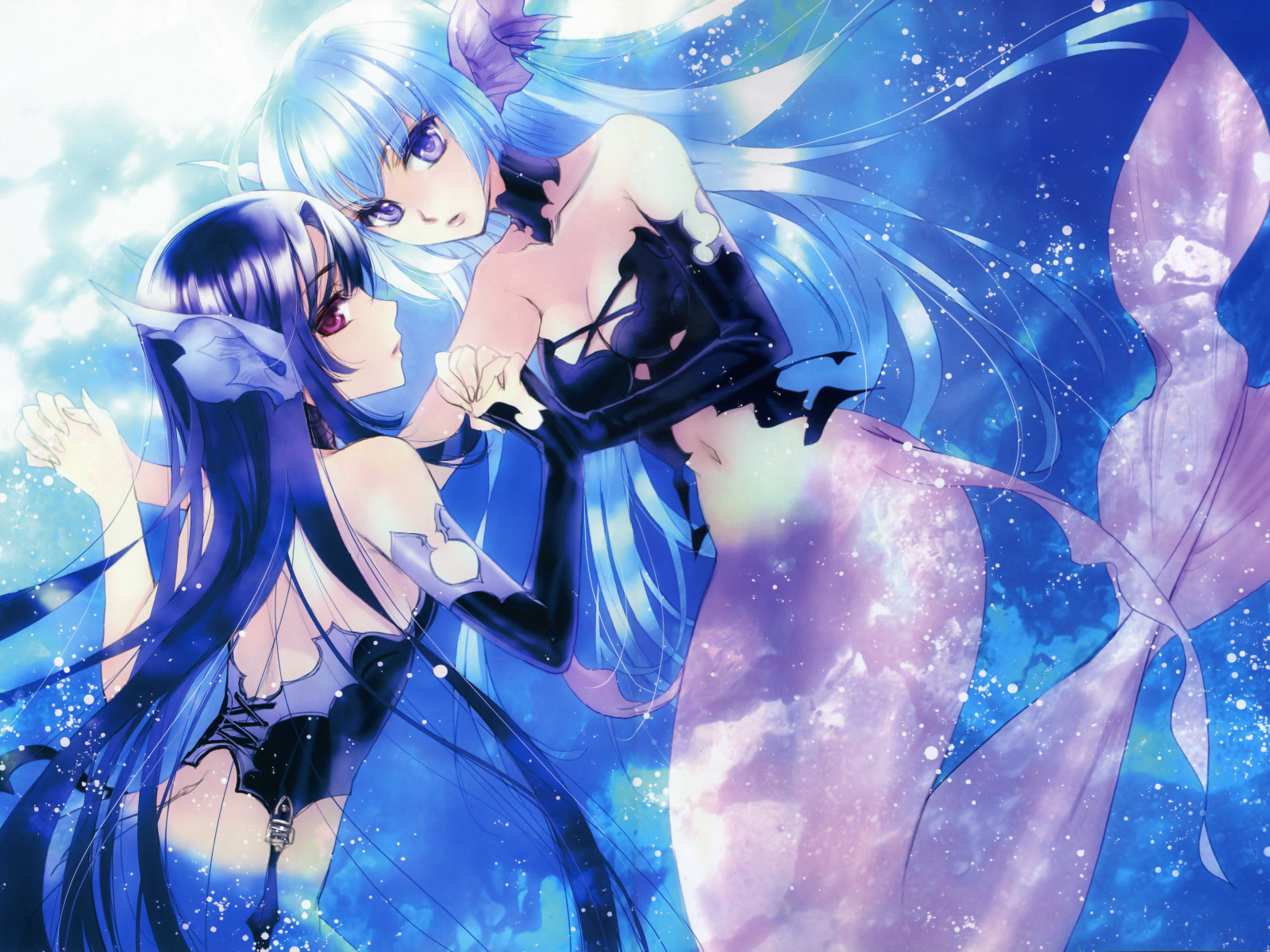 Назад к обои грудь, девушка, пузыри, океан, русалка, аниме, арт, хвост