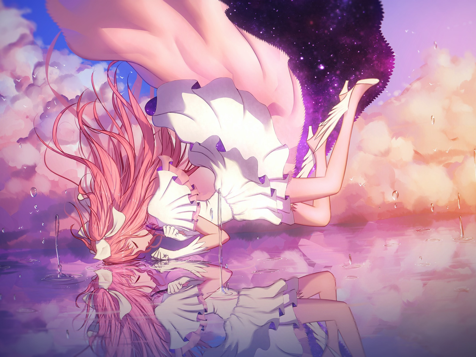 Назад к обои небо, вода, девушка, звезды, облака, отражение, аниме, арт