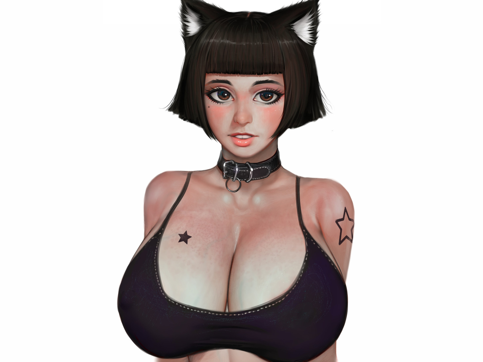 Назад к обои грудь, девушка, фон, рисунок, минимализм, декольте, форма, catgirl