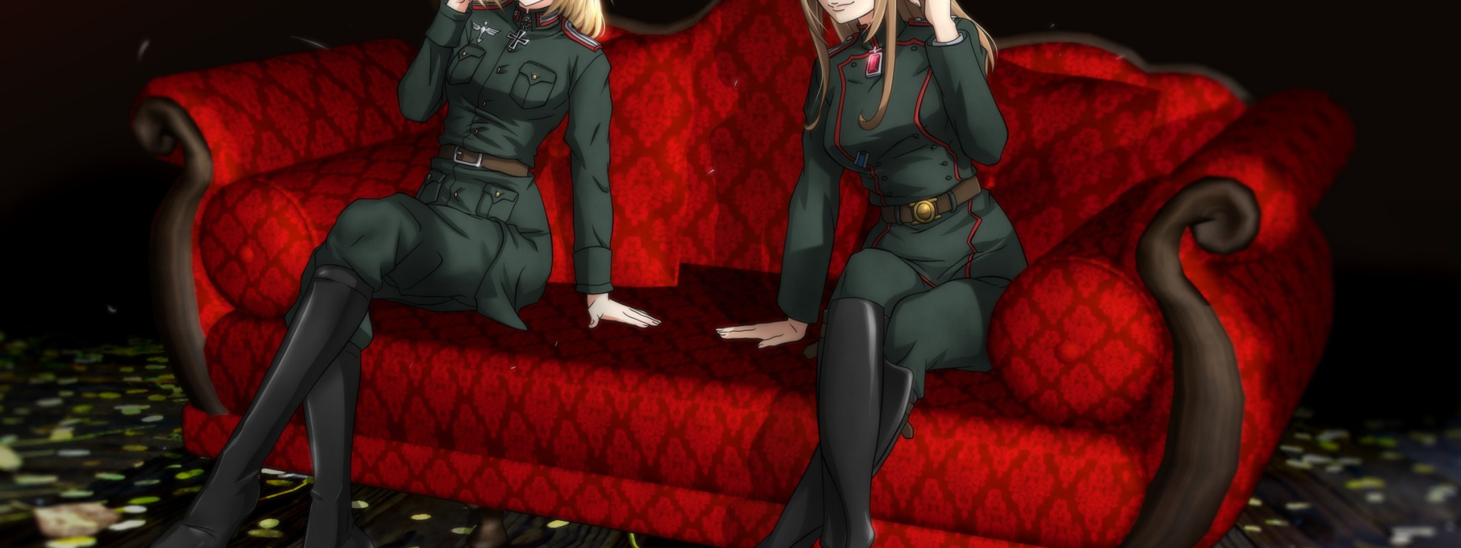 Назад к обои red, girl, soldier, military, war, anime, blonde, asian