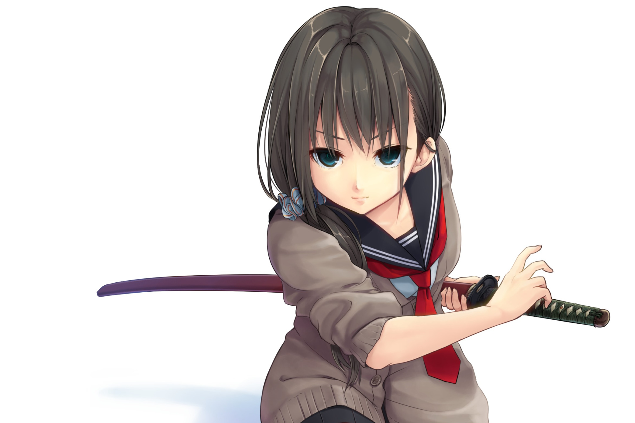 Назад к обои взгляд, девушка, оружие, фон, катана, форма, жест, art