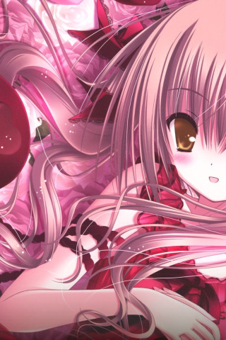 Назад к обои девушка, улыбка, волосы, розы, глазки, аниме, конфеты, бантик