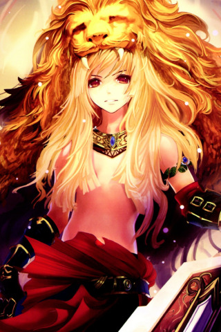 Назад к обои девушка, оружие, меч, лев, аниме, арт, клыки, tachikawa mushimaro