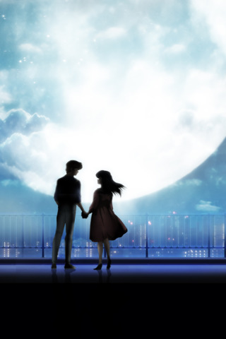 Назад к обои девушка, ночь, город, луна, пара, парень, maison ikkoku, takahashi rumiko