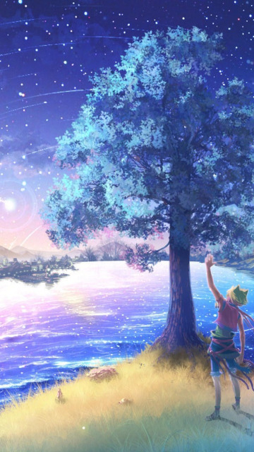 Назад к обои небо, звезды, ночь, природа, аниме, арт