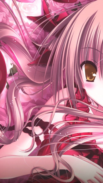 Назад к обои девушка, улыбка, волосы, розы, глазки, аниме, конфеты, бантик