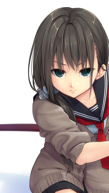 Назад к обои взгляд, девушка, оружие, фон, катана, форма, жест, art