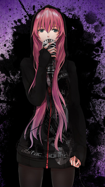 Назад к обои девушка, капли, кляксы, микрофон, длинные волосы, вокалоид, Обои аниме, Мигурине Лука