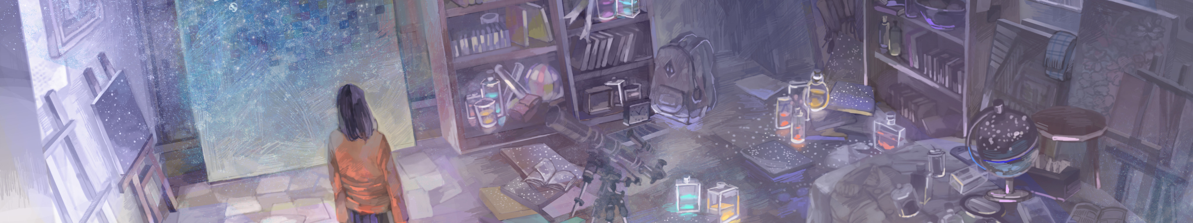 Назад к обои девушка, цветы, игрушка, кровать, картина, кран, аниме, шарф