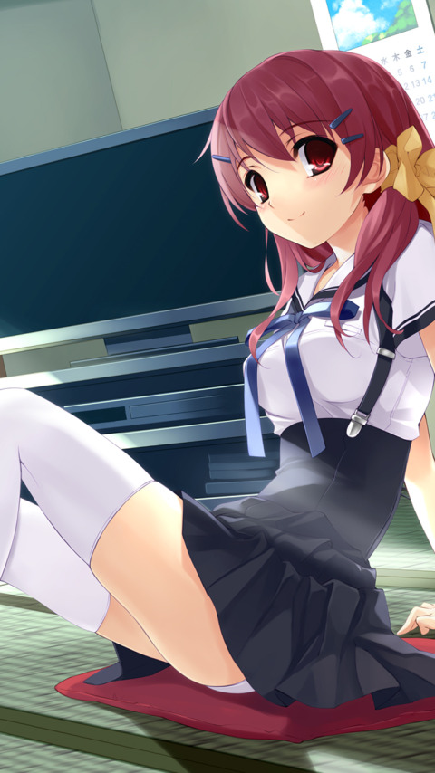 Назад к обои глаза, девушка, юбка, сидит, гольф, Ashita no Kimi to Au Tame ni