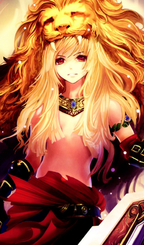 Назад к обои девушка, оружие, меч, лев, аниме, арт, клыки, tachikawa mushimaro