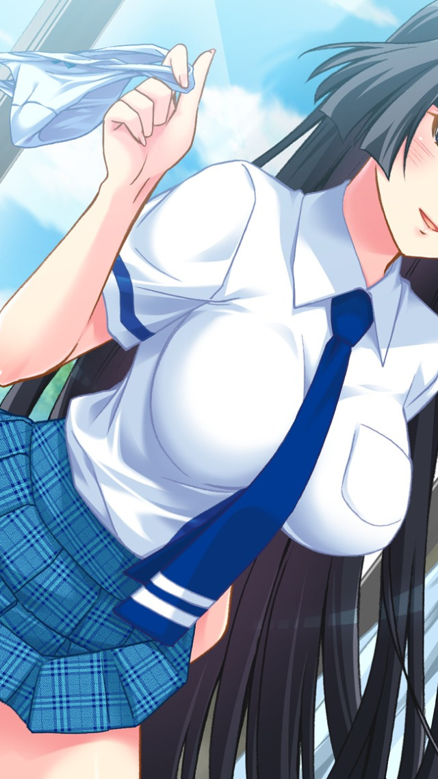 Назад к обои взгляд, девушка, улыбка, трусики, art, смущение, no pantsu!!, kajiki aiko