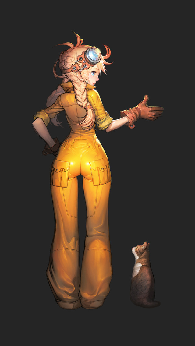 Назад к обои кошка, девушка, минимализм, черный фон, жест, комбинезон, желтая одежда
