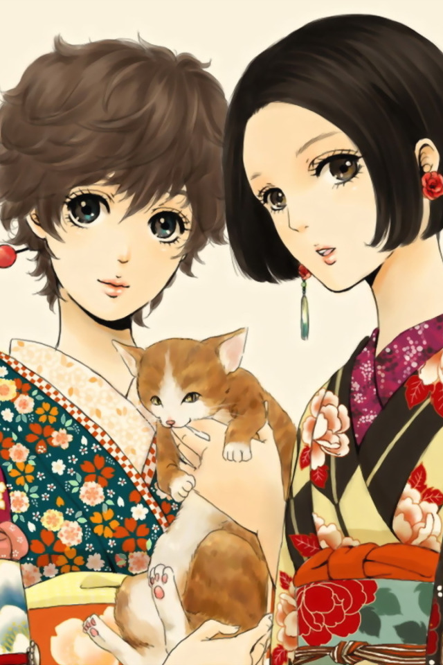 Назад к обои кошка, девушка, кимоно