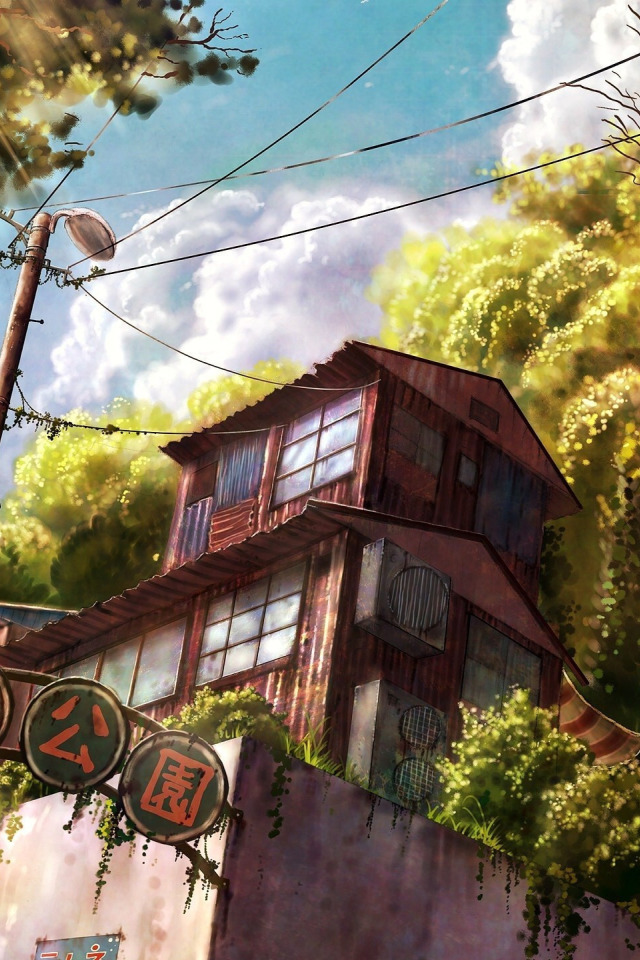 Назад к обои знак, улица, Япония, арт, лестница, навес, домик, старинный